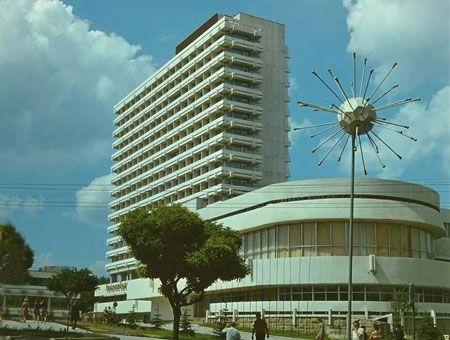În total s-au examinat trei proiecte executate de un singur autor. După dezbatere (cum s-a scris în reţeaua Internet) a fost aleasă varianta prezentată pe poza de mai sus, cea mai asemănătoare cu clădirea existentă a hotelului.